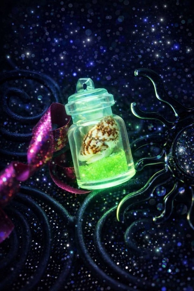 Quand la nuit tombe, ces petites fiole s'éveillent. Ce pendentif capture des fragments de lumiere comme si un lutin décorateur avait fait ses course au bord de la mer. Chaque fiole renferme son trésor: un petit coquillage miniature magique avec des couleurs scintillante et un mystère a emporter partout. Elles ne prenne pas de place mais prenne toute l'attention. Adopter votre fiole lumineuse car la magie c'est bien mais en miniature, c'est encore mieux.